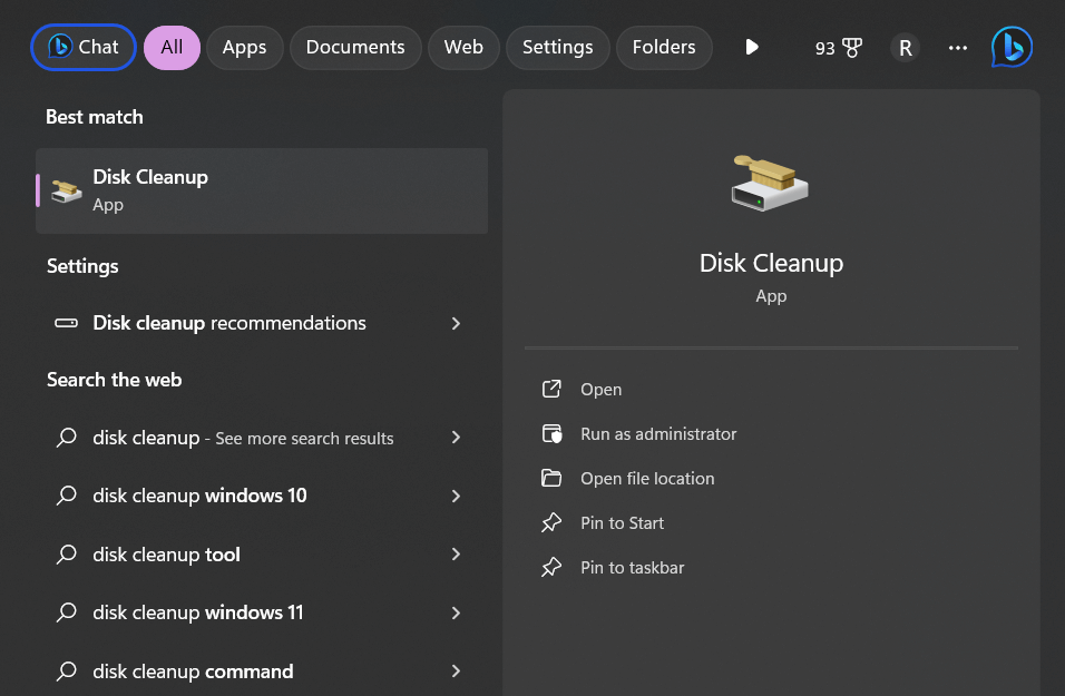Étape 1 : Ouvrez le menu Démarrer et recherchez « Nettoyage de disque ». Cliquez sur l'application de bureau Disk Cleanup.