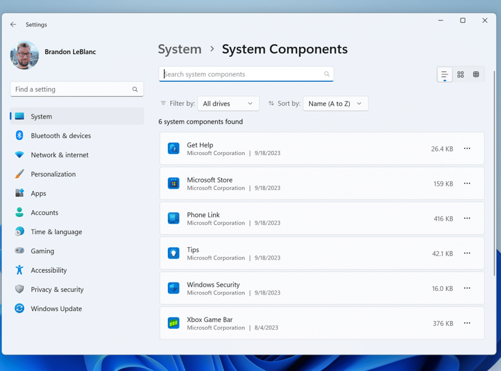 De plus, Windows 11 build 25967 apporte également une nouvelle page « Composants système » à l'application Paramètres. Cette page répertorie toutes les applications, codecs et plugins de la boîte de réception en un seul endroit, permettant aux utilisateurs de gérer plus facilement les logiciels fournis avec le système d'exploitation.