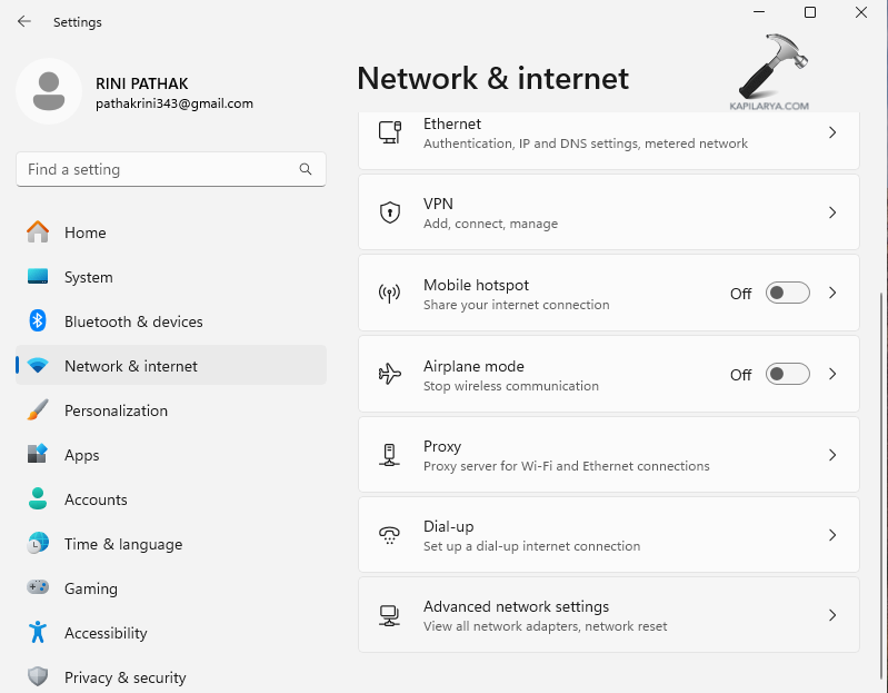 Étape 1-Tout d’abord, visitez Réseau et Internet sous Paramètres.