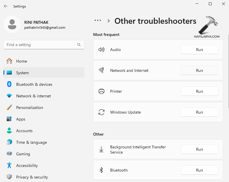 Étape 2-Sélectionnez Système. Accédez à Dépannage, puis à Autres dépanneurs.