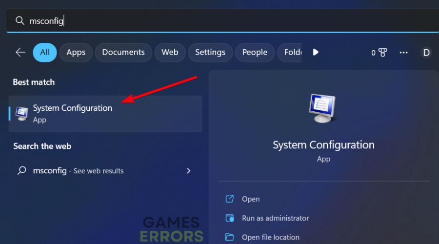 - Entrez MSConfig dans la zone de recherche.