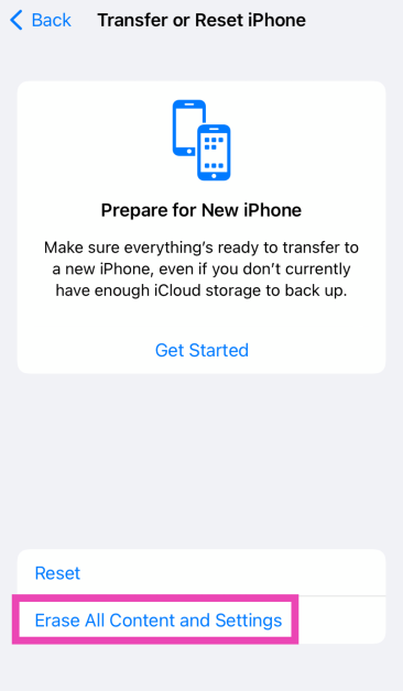 Étape 2 :Appuyez surTransférer ou réinitialiser l'iPhone.