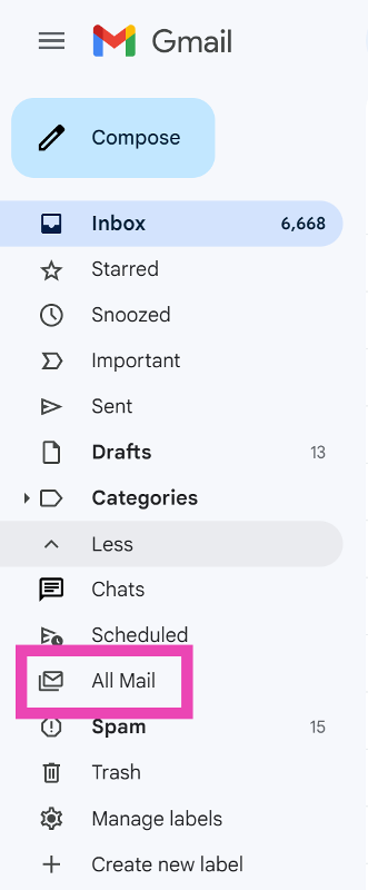 Étape 3 :Faites défiler vers le bas et sélectionnezTout le courrier.