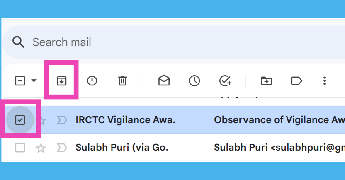 Étape 2 :Cliquez sur lecase à cocherà côté de l'e-mail que vous souhaitez archiver.
