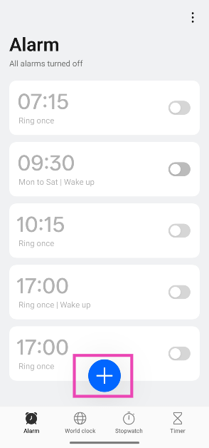 Étape 2 :Frappez leplus iconpour créer une nouvelle alarme.