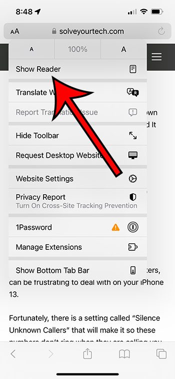 Une fois que vous avez fini de visualiser la page en mode Lecteur, appuyez simplement à nouveau sur le bouton AA et sélectionnez « Masquer le lecteur » pour revenir à la mise en page par défaut.