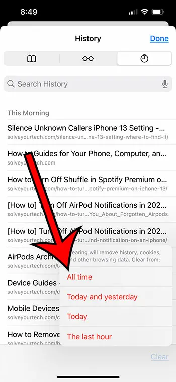 Étape 5 : Sélectionnez la période pour laquelle vous souhaitez supprimer l'historique.