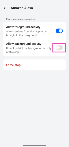 Étape 4 :Éteignez l'interrupteur à bascule à côté deAutoriser l'activité en arrière-plan.