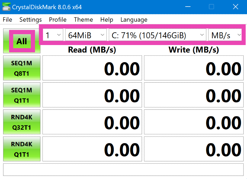 Vérifiez la vitesse du SSD à l'aide de CrystalDiskMark