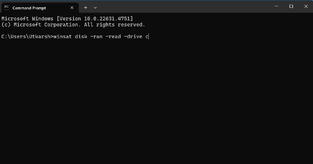 winsat disk -ran -read -drive [lettre attribuée au lecteur]