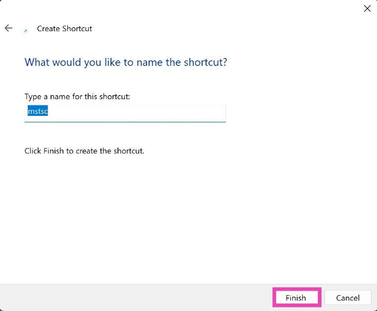 Étape 4 :Tapez un nom pour le raccourci et appuyez surFinition.