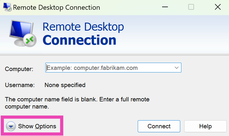 Étape 4 :LancementleApplication Connexion Bureau à distancesur votre PC Windows local.