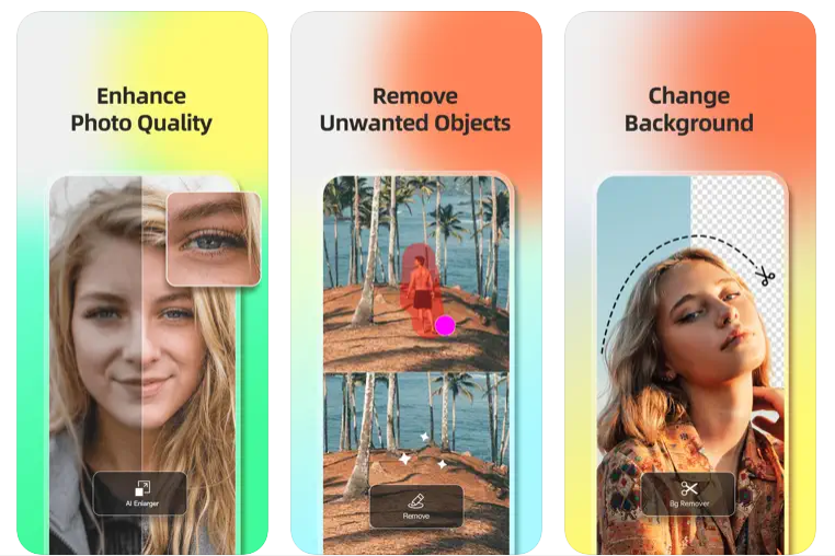 Vous voulez plus d’alternatives à Remini ? Cutoutpro est une application utile basée sur l'IA que vous pouvez utiliser. Vous pouvez trouver de nombreuses fonctions d'IA ici. Non seulement l'amplificateur de photo à utiliser, mais vous pouvez également choisir la suppression de l'arrière-plan de l'image, la diffusion de l'arrière-plan et même utiliser l'IA pour concrétiser la créativité.