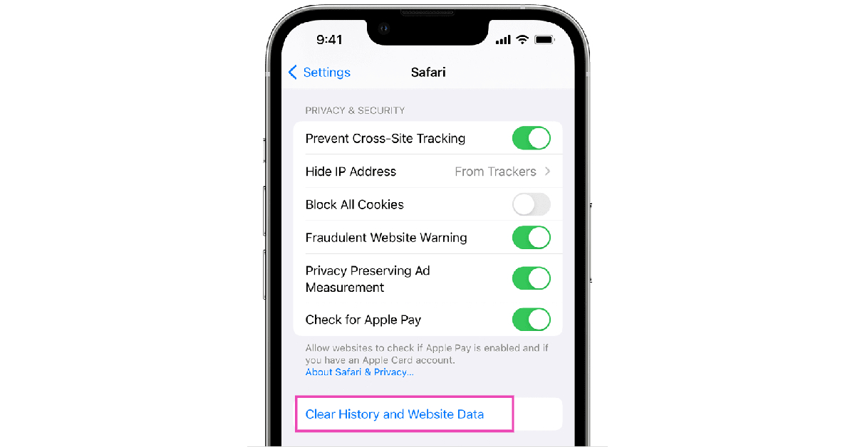Étape 3 :Appuyez sur « Effacer l'historique et les données ».