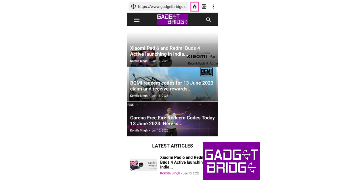 Étape 2 :Appuyez sur l'icône de feu à côté de la barre d'adresse.