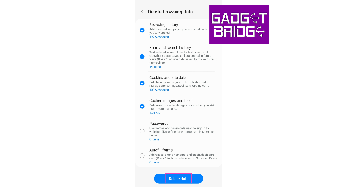 Étape 6 :Appuyez sur « Supprimer les données ».