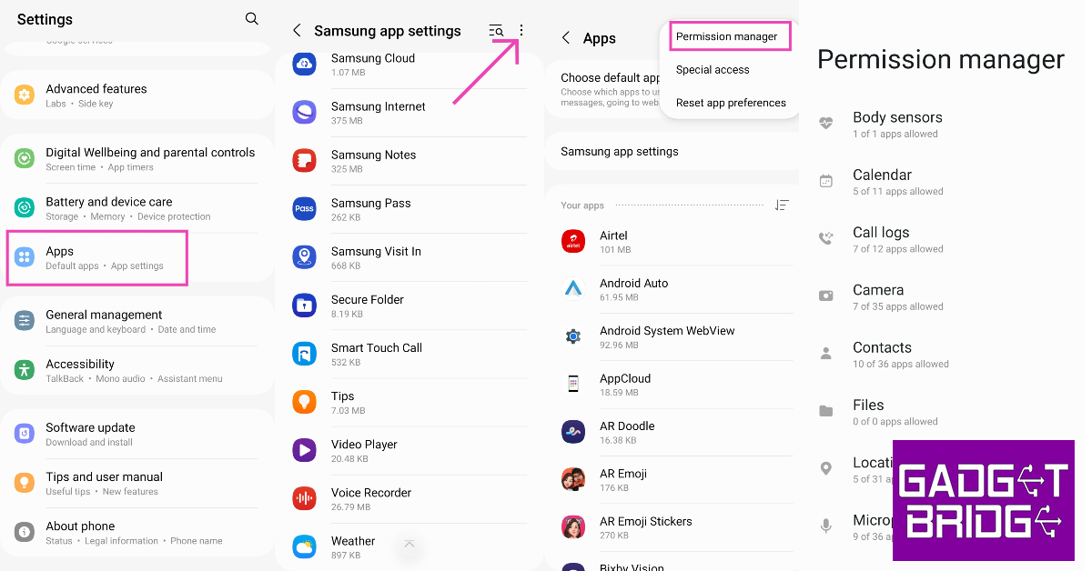 Si une application installée sur votre appareil vous espionne, elle nécessitera au minimum un accès à la localisation, à la caméra et au microphone. Aller àParamètres> Applications> Gestionnaire d'autorisationset parcourez toutes les autorisations individuellement. Si vous remarquez une application avec plus d'autorisations que nécessaire, désinstallez-la de votre appareil. Il est possible que l'application soit infectée par un logiciel de harcèlement.