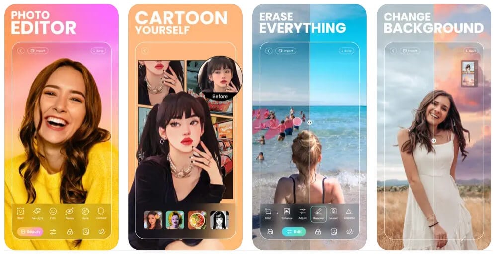 - Outils d'IA puissants : retouche de peau IA, optimiseur de photo IA, gomme de photo IA, suppression d'arrière-plan IA, créateur d'avatar IA