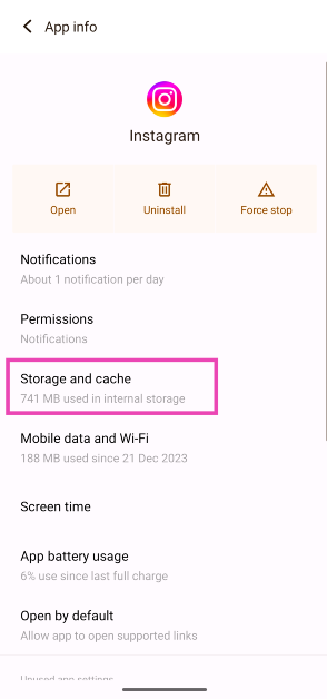 Si l'application Instagram sur votre téléphone est corrompue, sa suppression et sa réinstallation peuvent résoudre le problème. Appuyez longuement sur l'icône de l'application Instagram dans le tiroir des applications et sélectionnez « Désinstaller ». Alternativement, vous pouvez aller àParamètres>Applications>Instagramet appuyez sur « Désinstaller » dans la barre d'outils inférieure pour supprimer l'application de votre téléphone. Une fois supprimée, réinstallez l'application depuis le Google Play Store.