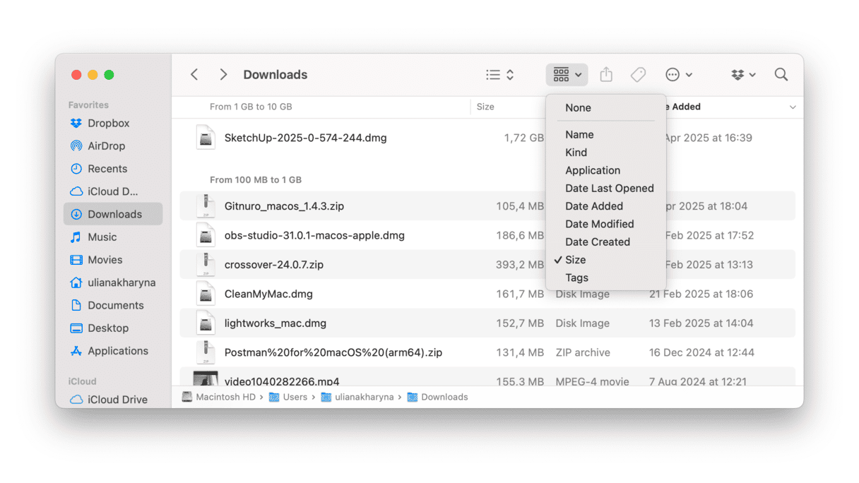Vous aussi, vous téléchargez des choses et vous ne vous en débarrassez jamais ? Ensuite, votre dossier Téléchargements a probablement besoin d’un bon vieux tri. Si vous avez trop peur de faire face à cette énorme pile de fichiers, voici une astuce rapide : triez tous vos éléments téléchargés par date d'ajout. Ensuite, faites défiler jusqu’à la fin du dossier et vous verrez les fichiers poussiéreux qui sont là depuis un certain temps. Commande-cliquez pour mettre en surbrillance plusieurs fichiers et les envoyer à la corbeille.