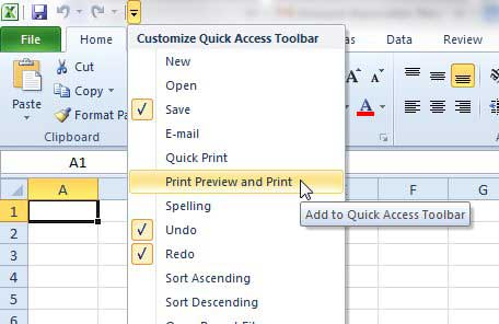 Suivez donc la procédure ci-dessous pour savoir comment ajouter un raccourci d'aperçu avant impression dans Excel 2010.