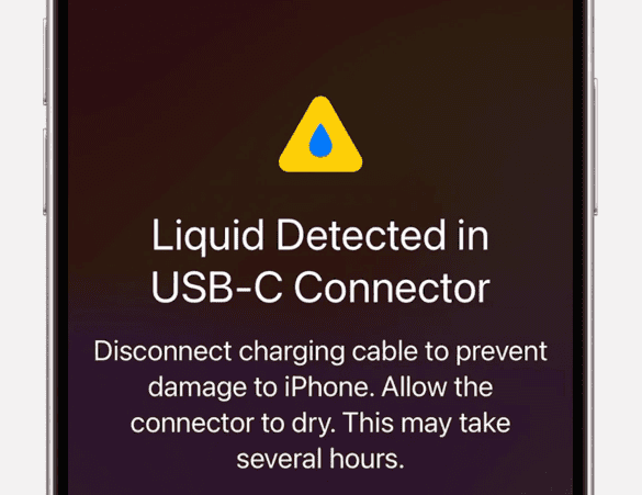 - Si de l'eau est détectée, iOS vous alertera lorsque vous essayez de charger.