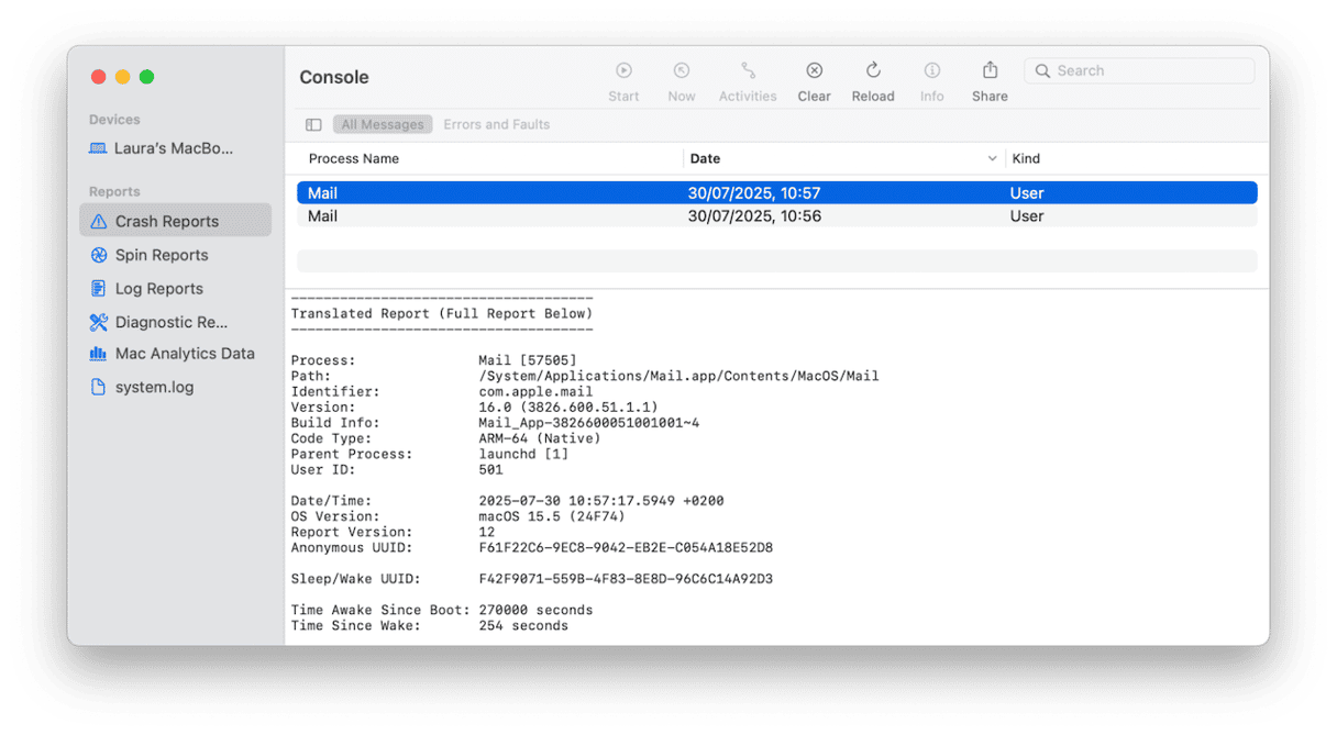Pour un dépannage avancé, vous pouvez également essayer de jeter un œil à l'application console et de rechercher les rapports d'erreur. Voici comment procéder :