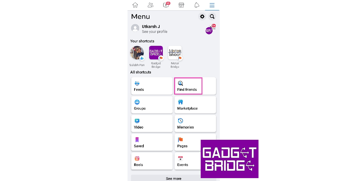 Étape 1 :Lancez l'application Facebook sur votre smartphone et appuyez sur le boutonicône de recherchedans le coin supérieur droit de l'écran.