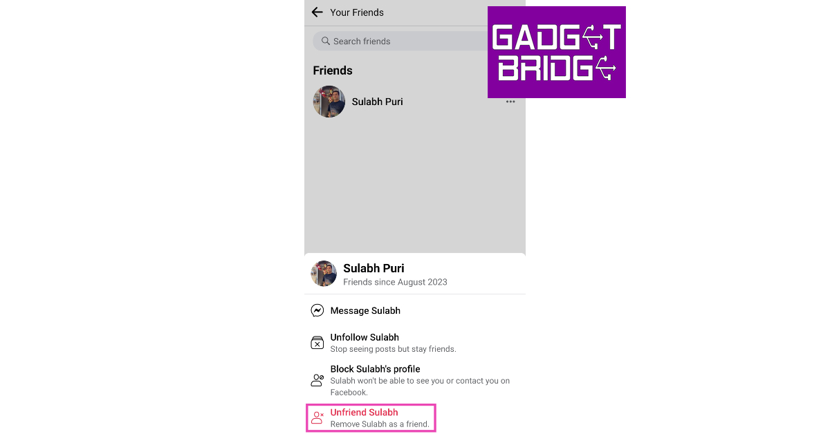 Étape 5 :SélectionnerNe plus être ami.