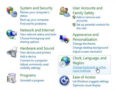 Étape 2 : Cliquez sur leChanger les claviers ou d'autres méthodes de saisielien dans leHorloge, langue et régionsection de la fenêtre.