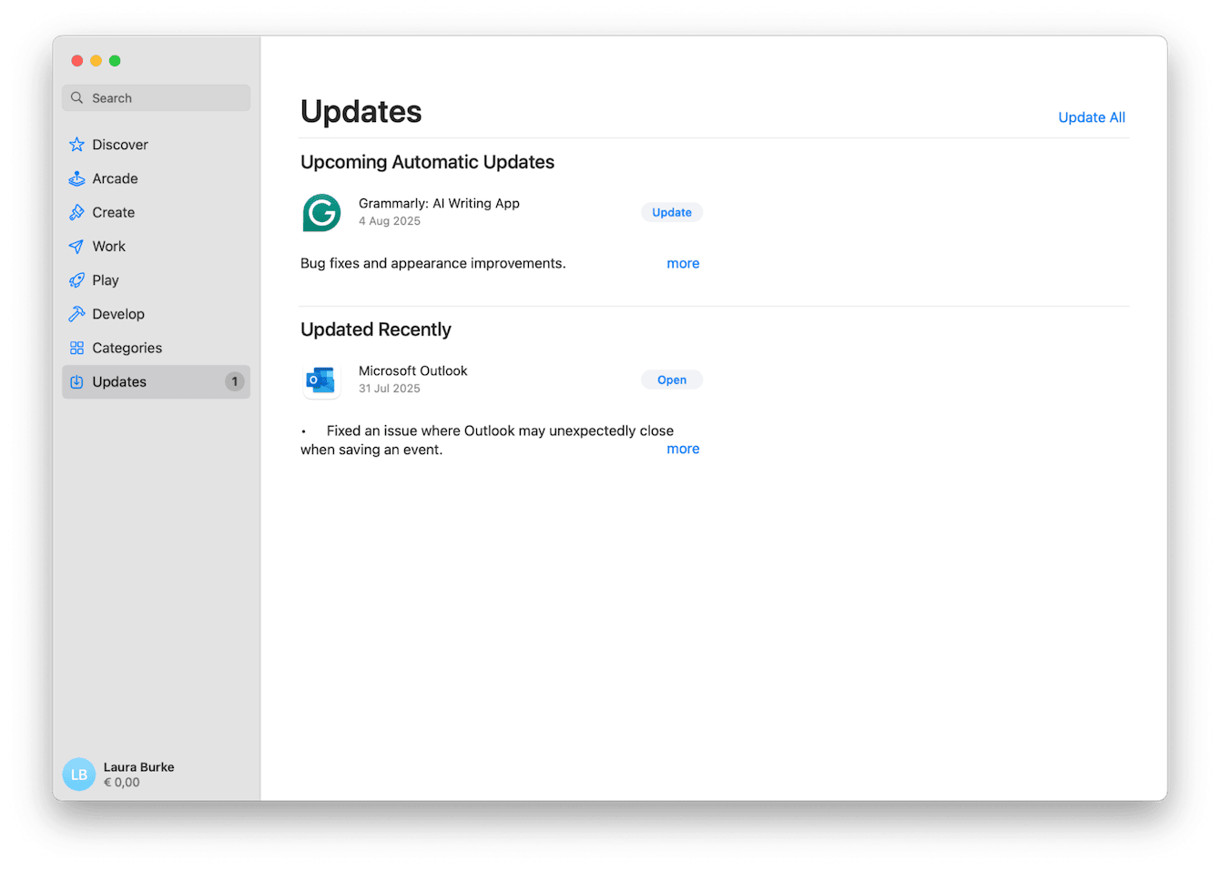 Recherchez manuellement les mises à jour dans l'App Store > Mises à niveau ou directement depuis le site Web du développeur.
