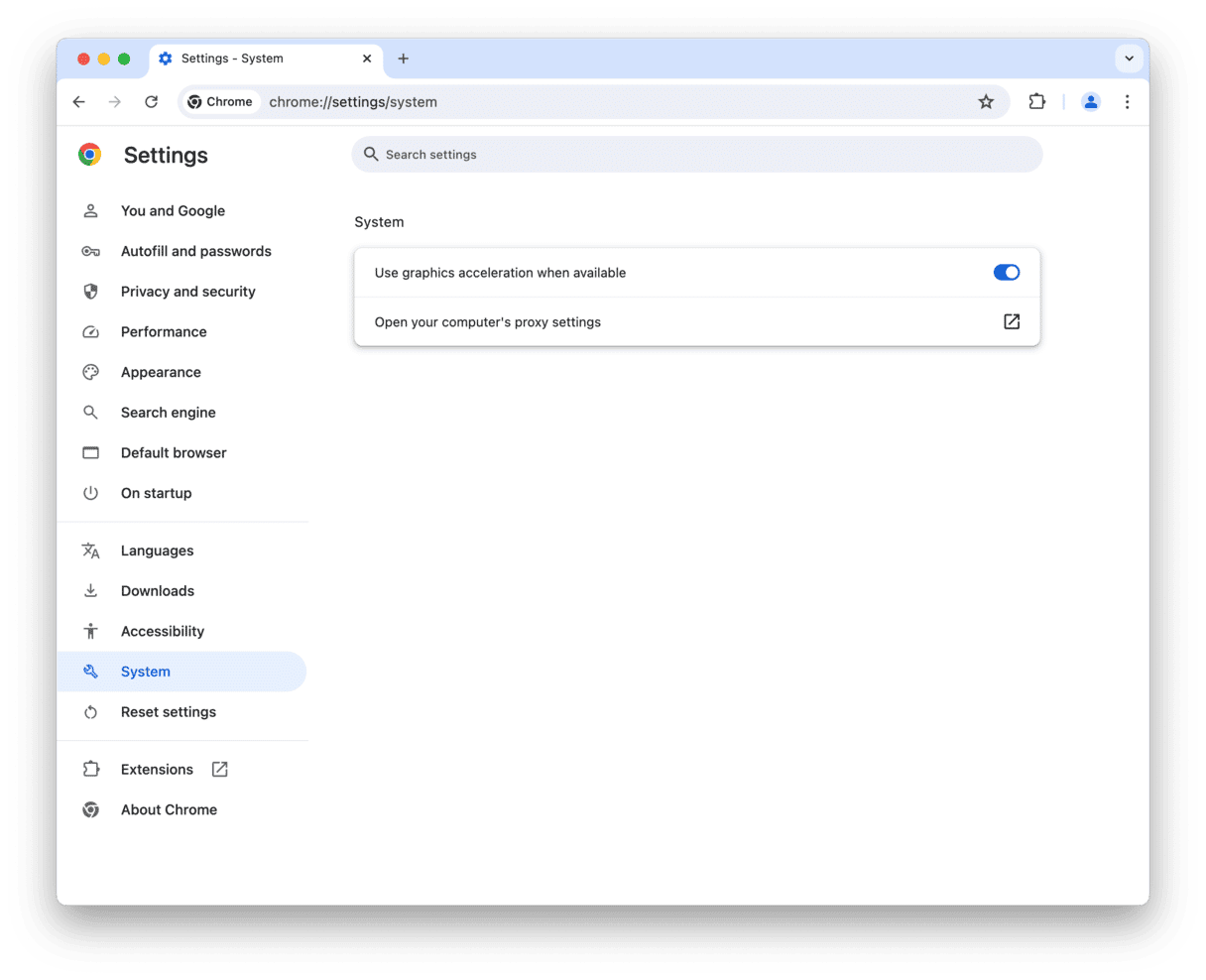 L'accélération matérielle est censée accélérer votre Chrome au détriment des ressources matérielles de votre Mac. Mais bien souvent, cette fonctionnalité fait planter les choses. L'accélération matérielle se trouve ici :