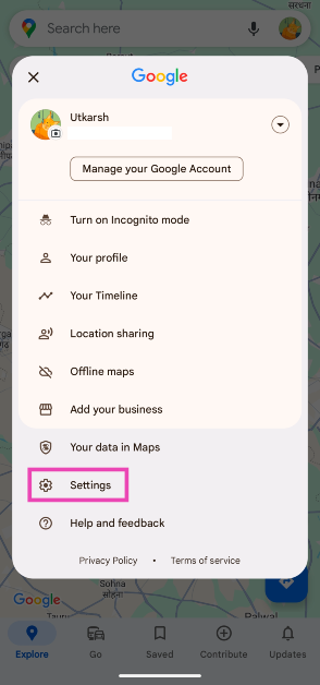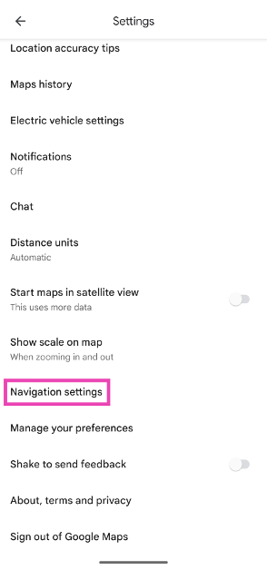 Étape 4 :Faites défiler vers le bas et sélectionnezParamètres de navigation.
