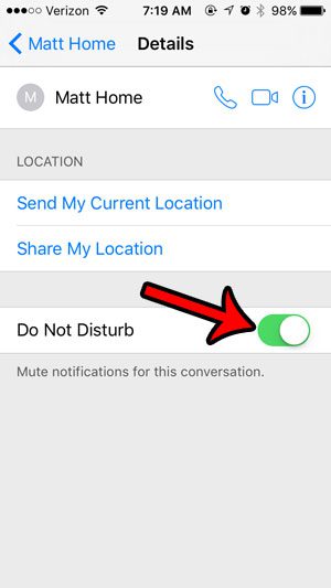 La possibilité d'être toujours à portée de main d'un appel téléphonique ou d'un SMS est l'un des plus grands attraits de la culture mobile, mais vous ne souhaitez peut-être pas que vos contacts professionnels aient un accès 24 heures sur 24. S'il se fait tard et que quelqu'un n'arrête pas de vous envoyer des messages texte, désactiver les notifications de cette conversation peut vous apporter un peu de paix et de tranquillité. Vous pouvez désactiver une conversation en l'ouvrant dans leMessagesapplication, en appuyant sur l'icôneDétailsbouton, puis en activant leNe pas dérangeroption.