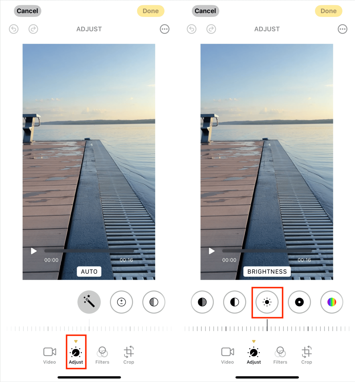 Si votre vidéo est trop sombre ou trop lumineuse, vous pouvez effectuer d'autres ajustements pour vous aider. Vous pouvez modifier des éléments tels que l'exposition, les ombres/les hautes lumières, etc. Allez-y et jouez avec chaque ajustement pour voir si cela aide. Si ce n'est pas le cas, vous pouvez toujours ramener le curseur là où il se trouvait ou réinitialiser votre vidéo à son aspect d'origine.
