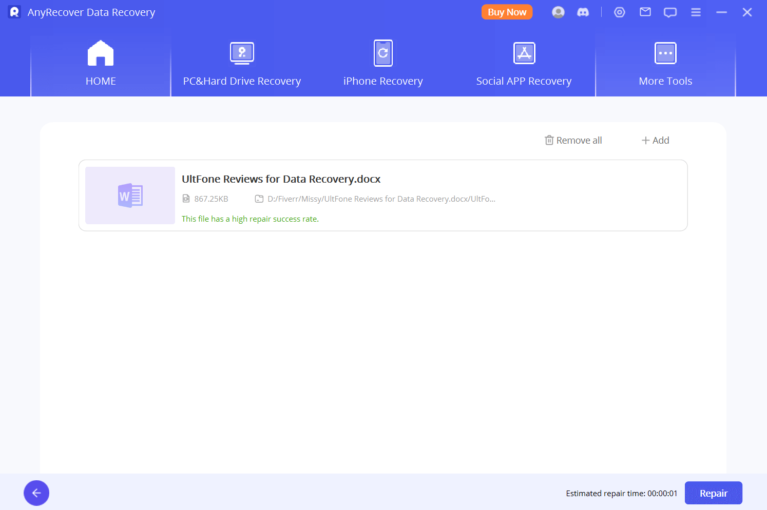 Voyons comment récupérer un fichier Word corrompu à l'aide d'AnyRecover.