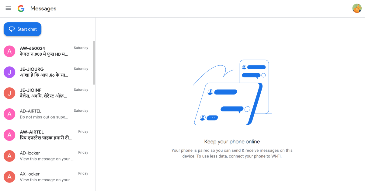 Cette année, WhatsApp a augmenté sonjeu d'appairage d'appareilsainsi, permettant aux utilisateurs de lier un maximum de 6 appareils à leur compte à la fois. Bien que vous puissiez associer plusieurs appareils à Google Messages, vous ne pouvez l'utiliser que sur un seul ordinateur à la fois. Pour que le portail Web de l’application fonctionne, vous devez que votre smartphone soit actif. Messages pour le Web ne prend pas encore en charge RCS. Les frais standard de l'opérateur pour les SMS s'appliqueront toujours lorsque vous envoyez un SMS à l'aide de Messages pour le Web.
