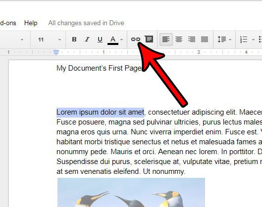 Étape 3 : Cliquez sur le bouton de lien dans la barre d'outils au-dessus du document.