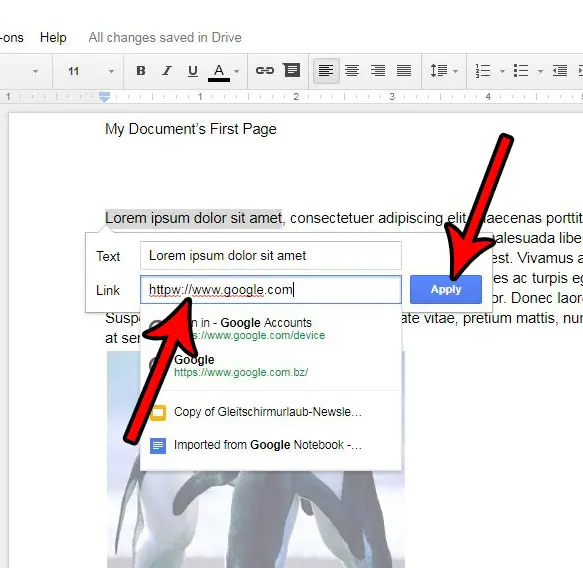 Notre didacticiel se poursuit ci-dessous avec des informations supplémentaires sur l'ajout d'un lien hypertexte à un document Docs, y compris des images de ces étapes.