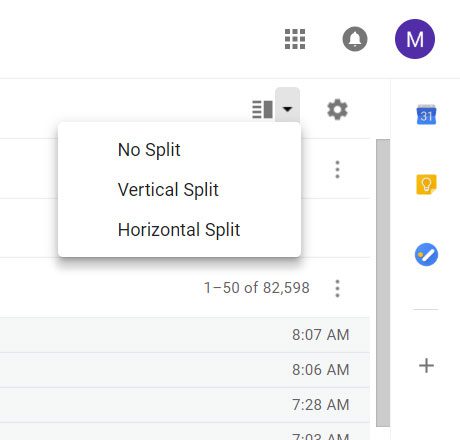 Étape 2 : Cliquez sur la flèche à droite duBasculer le mode volet divisébouton en haut à droite de la boîte de réception.
