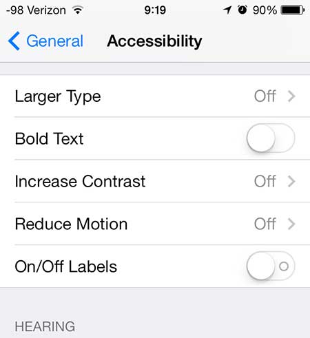 Maintenant que vous savez comment activer les étiquettes One et Off pour les menus de votre iPhone, vous pouvez déterminer plus facilement si une option est activée ou désactivée sur l'appareil.