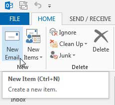 Étape 2 : Cliquez sur leNouvel e-mailbouton dans leNouveausection du ruban en haut de la fenêtre.