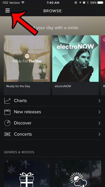 - Appuyez sur leMenuicône dans le coin supérieur gauche de l’écran. C'est l'icône avec trois lignes horizontales.