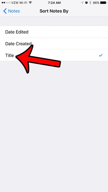 Les étapes de ce guide ont été écrites à l'aide d'un iPhone 7 Plus, sous iOS 10. Le résultat de ces étapes sera que toutes les notes d'un dossier seront triées par ordre alphabétique, selon leur titre.