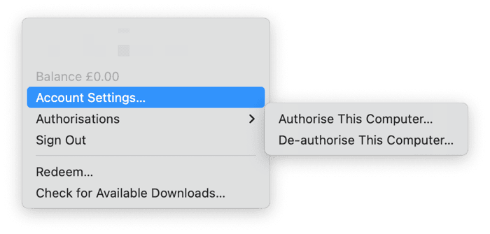 - Dans Apple TV ou Apple Music, cliquez sur le menu Comptes et choisissez Paramètres du compte.