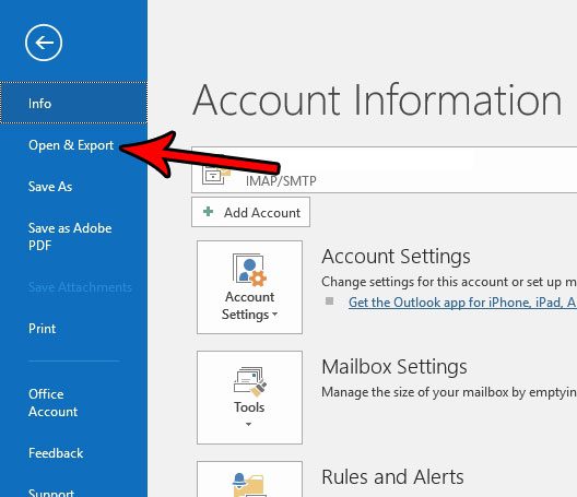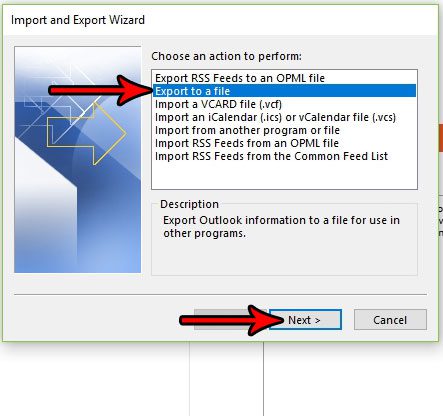 Les étapes de cet article vont vous montrer comment créer une copie de sauvegarde d'un seul dossier de courriers électroniques pour un compte que vous avez configuré dans Outlook 2016. Vous pourrez enregistrer cette copie de sauvegarde du dossier dans un emplacement de votre ordinateur et vous aurez la possibilité de choisir si vous souhaitez que cette copie de sauvegarde soit un fichier .csv ou un fichier .pst. Un fichier .csv peut être ouvert dans un certain nombre de programmes différents, tels que le Bloc-notes ou Excel, tandis qu'un fichier .pst peut être ouvert dans Outlook. Si vous envisagez d'importer la copie de sauvegarde du dossier vers une autre installation d'Outlook, vous souhaiterez peut-être choisir .pst. Si vous souhaitez simplement pouvoir accéder facilement aux e-mails ultérieurement, vous souhaiterez peut-être utiliser .csv.