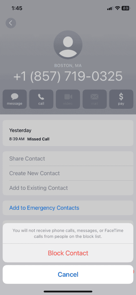 Une fois bloqué, vous ne recevrez plus d’appels, de SMS ou de demandes FaceTime de ce numéro. Le blocage des numéros est un excellent moyen d'arrêter le spam et les communications indésirables, et vous pourrez toujours débloquer des numéros plus tard si vous changez d'avis.