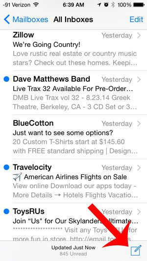 Étape 2 : Touchez leComposeicône dans le coin inférieur droit de l’écran.