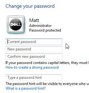 Vous devez également saisir un indice pour vous aider à mémoriser le mot de passe dans le champTapez un indice de mot de passechamp. Essayez de ne pas rendre cela trop évident, car cet indice s'affichera chaque fois que quelqu'un entrera incorrectement votre mot de passe.