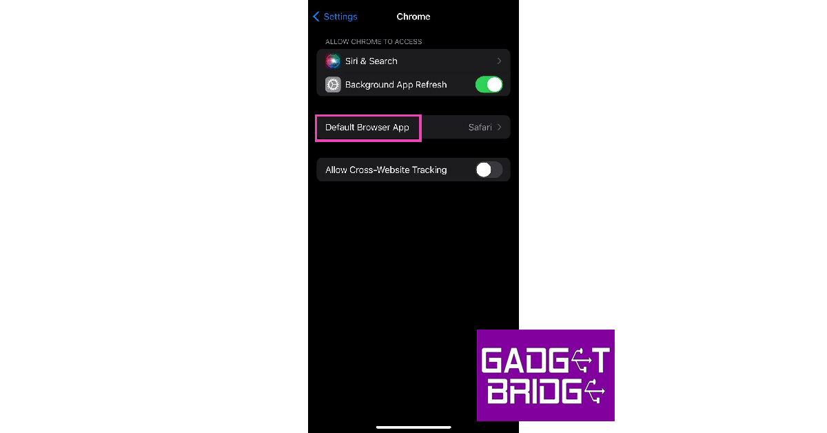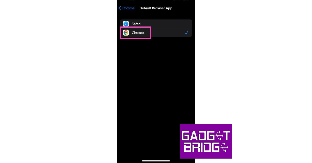 Pour définir Google Chrome comme navigateur Web par défaut sur votre iPhone, accédez àParamètres> Chrome> Application Navigateur par défautet sélectionnez Chrome.